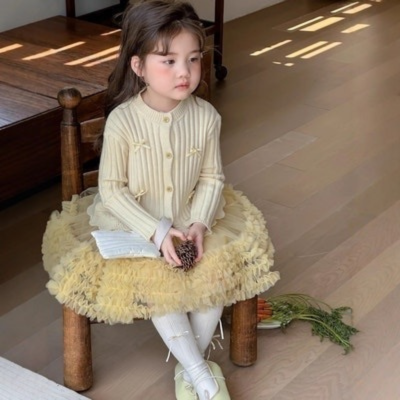 [ 리본가디건옐로튜튜치마셋 / 수입 ]