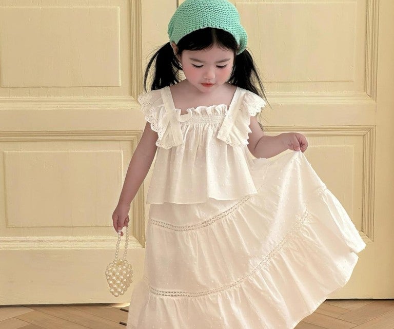 [수입]화이트날개펀칭투피스